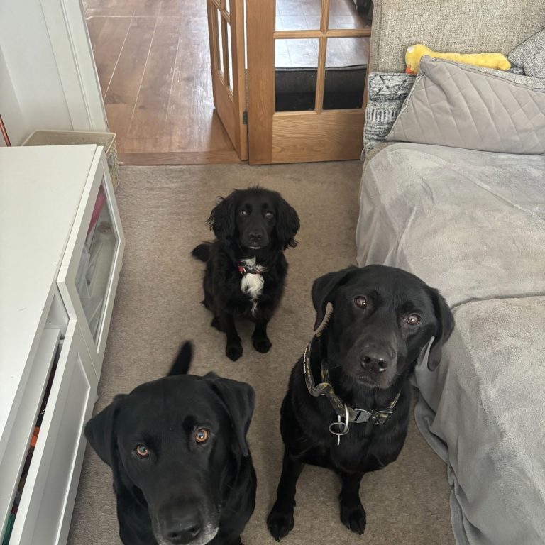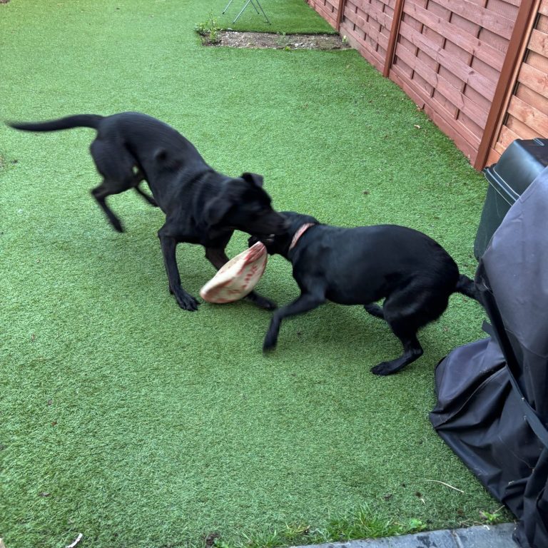 Our black lab Bailey has treated Katie's like her home from home. She has fitted in with their family environment perfectly and adores their own lab Monty.